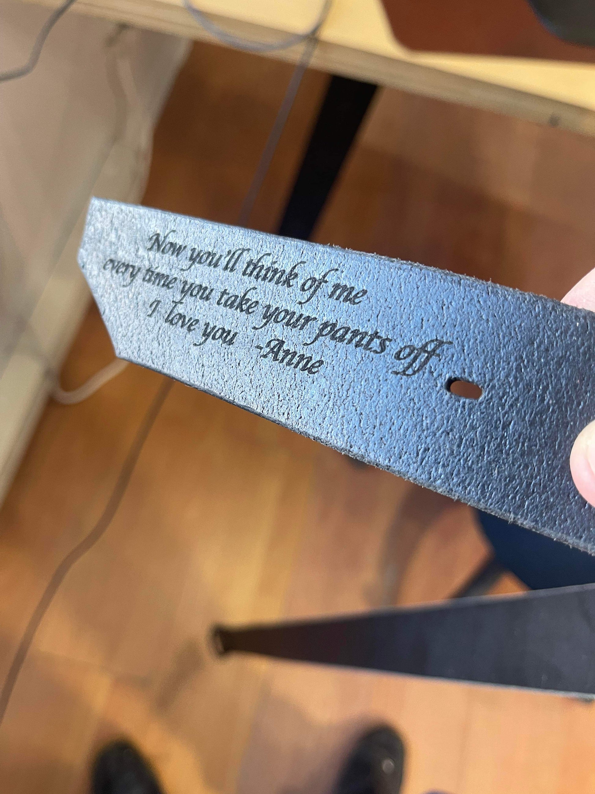 Réalisée avec soin à partir de cuir premium, cette ceinture est conçue pour durer tout en ajoutant une touche sophistiquée à toutes vos tenues, qu'elles soient décontractées ou formelles. Le véritable point fort ? La possibilité de personnaliser l'intérieur de la ceinture avec une inscription de votre choix : une date spéciale, un nom, ou un message significatif.